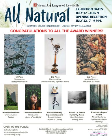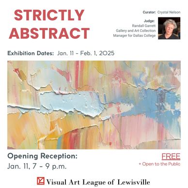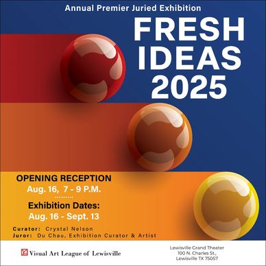 Visual Art League of Lewisville members have the opportunity to submit artwork for our Main Gallery exhibitions at the Lewisville Grand Theater. The Main Gallery is a 2400 sq. ft. space with ample lighting, pedestals with and without acrylic covers and benches to sit and enjoy the artwork.